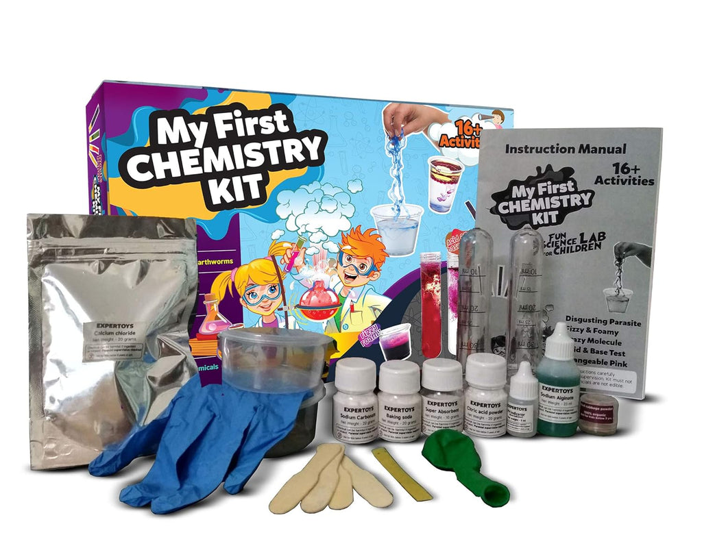 Contains: Test-tubes, Magic paper, Balloon, Containers, Dropper, Spoons, Red Cabbage Powder, Gloves, Ph Scale, Instruction Manual. How to use: Read the instruction manual and work on it. (Not for kids aged below 3 and parents take care of the childrens while using it). Dimensions: 23*33*7 (H*B*W)