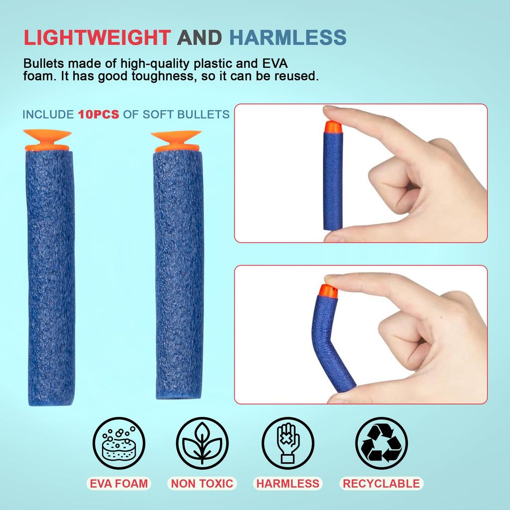 Engage your child's imagination with Funbee Musical Gun Toys! With moving gears, music, and LED lights, this toy gun brings excitement to any battle game. Its soft foam bullets make it perfect for kids 2+ years old. Let them experience the thrill of target shooting while they play and learn.