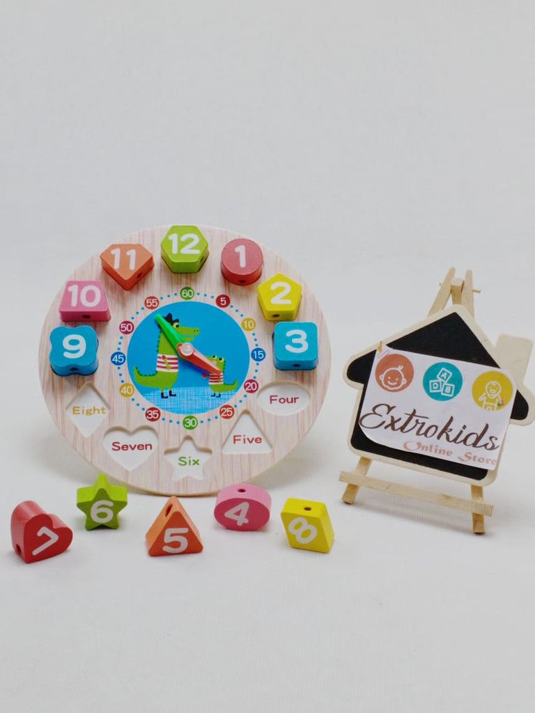 Wooden Seton Toddler Clock with Lacing | Interactive Time-Teaching Toy