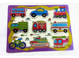 This is a wooden transport puzzle board for kids.