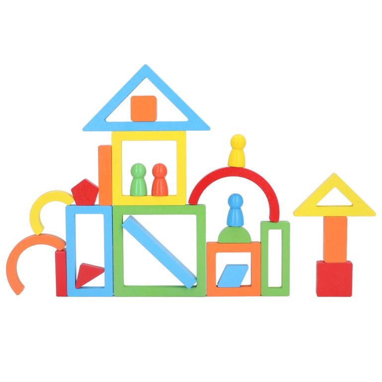 • Creative Block Set Our stacking block set includes 26 colorful geometric blocks in different shapes and 18 double-sided guide cards. It is ideal for children to learn shapes and colours and stimulate children's imagination and creativity.